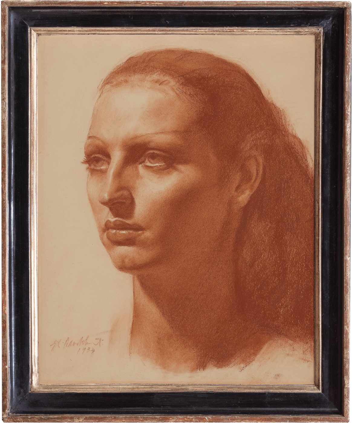 Philip Mould & Company have researched, acquired and sold a number of works by Brockhurst Some notable sales are listed above and include portraits of his first wife Anais. Brockhurst’s penetrating Portrait of Nancy Woodward, sister of his model and partner Kathleen Woodward, is currently for sale with the gallery.