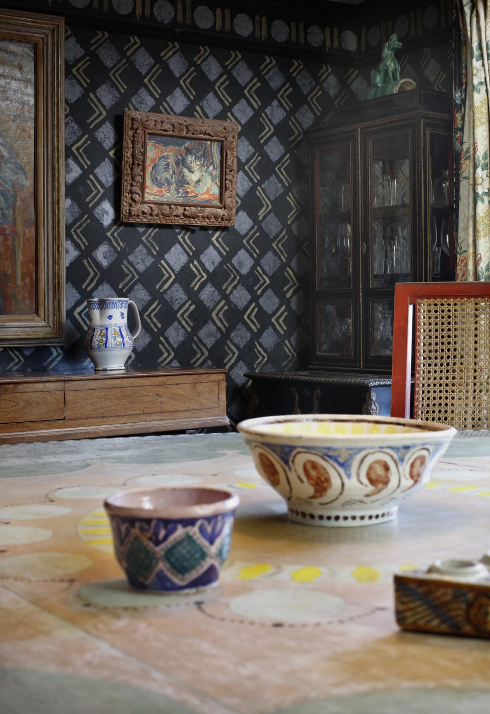 Kit: There are two panels painted on wood in the Library by Vanessa Bell and also a small painting of a bowl of flowers by Roger Fry that I particularly love, the fabric he paints in the background is particularly lovely.