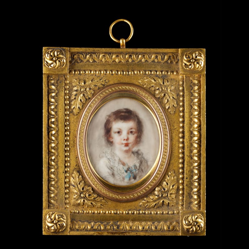 Louis was to marry two years after the probable date of this miniature in 1767. As the heir to the enormous Penthièvre fortune, Louis enjoyed a hedonistic lifestyle. In an attempt to curb his son’s wild ways, Louis’ bride was chosen as the pious Maria Luisa of Savoy. Unfortunately, the proposed change of lifestyle came too late, and Louis died of venereal disease at the age of twenty, having sold his new wife’s diamonds to pay his mounting debts.