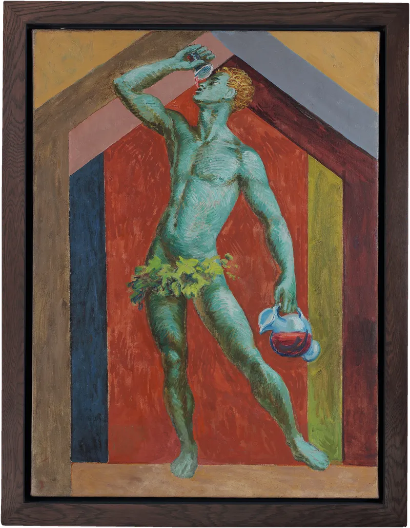 Duncan Grant, Bloomsbury group bohemian, painted this portrait of the rising artist Edward ‘Teddy’ Wolfe, at the juncture just before he reached the height of his powers as a modern artist. It was painted in the year of Wolfe’s much-anticipated return to London, after a period of severe illness that entailed his recovery in the warmer climate of his hometown, Johannesburg, South Africa. Wolfe returned to London invigorated and produced many of his best works throughout the 1920s. He would latterly become known as ‘England’s Matisse’ as a result of his vibrantly coloured portraits and still lifes.