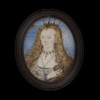 Hilliard’s sitter is portrayed with long, flowing hair: an indication either that she was unmarried at the time this likeness was created or, if married, that she has been portrayed in masquing attire.[6] The latter seems the more likely scenario, particularly if the traditional identification of the sitter is accepted: Elizabeth Stanley was married at the age of about fourteen and the lady portrayed here looks to be slightly older, perhaps in her late teens. The sitter’s headwear, like her loose hair, is also evocative of the world of the late Elizabethan and early Jacobean court entertainment. What Hilliard has depicted here is probably either an ‘attire’ or a ‘circlet’, examples of which are recorded in the inventories of Anne of Denmark, the greatest patron of the early Stuart court masque.[7]