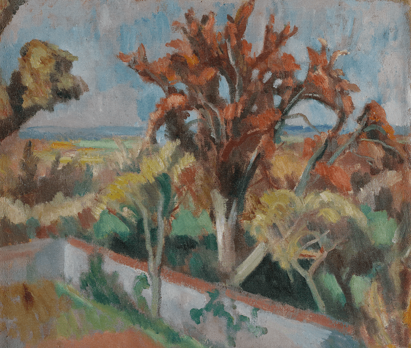 Dancers is an early modernist painting made at the advent of Post-Impressionist art in Britain. Roger Fry distinguished himself as both an intellectual and a painter, and these two activities were inseparably connected throughout his life. This work was painted around the time that Fry curated the fêted exhibition Manet and the Post-Impressionists, held at the Grafton Galleries in London, which provoked a public outcry and created a new taxonomy of modernist painting. Having previously worked in a temperate, well-constructed style of naturalistic painting informed by his deep familiarity with old master painting from Giotto to Rembrandt, Fry’s style began to change following his first exposure to Cezanne in 1906. His painting Dancers uses an eclectic mixture of avant-garde tropes—in its radical simplification of detail, its irreverent subject-matter, its flamboyant palette of pure colour—and the traditions of history painting – in its multi-figure composition, its historicist costumes, its allusions to myth or ritual.