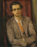 The similarity between the present work and that of the same sitter by Vanessa Bell in the National Portrait Gallery suggests that they were both painted during the same sitting, with the two artists working side by side.[2] This theory is supported by recent conservation, which revealed that Huxley’s tie in the Fry portrait was originally orange, as observed in the Bell portrait. It was perhaps changed for aesthetic reasons; on this smaller scale, Fry may have considered a brightly coloured tie too distracting. It also became clear during conservation that the portrait was originally larger and that Fry later reduced it in size and signed it again. The reason for this may never be known, but the result is a likeness of great intensity.