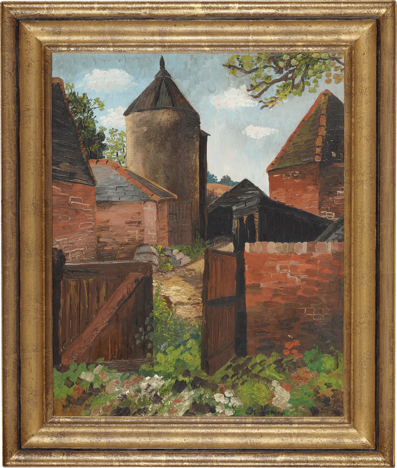 The present work depicts a view of a Turkish village near Izmir, a city on Turkey’s Aegean coast. Morris’ pallet has captured the warmth of the landscape, which reverberates throughout the terracotta rooftops. The thick, impasto technique employed here is typical of Morris’ style. Maggi Hambling, once a student at Morris and Lett’s East Anglia School of Painting and Drawing, noted how Morris would begin his painting process at the top left-hand corner of the canvas and work his way diagonally downwards, as though earnestly knitting the painting together through repetitive strokes. The present work demonstrates this staccato-like approach to paint application and exemplifies the highly textured finish evidenced throughout Morris’ oeuvre.