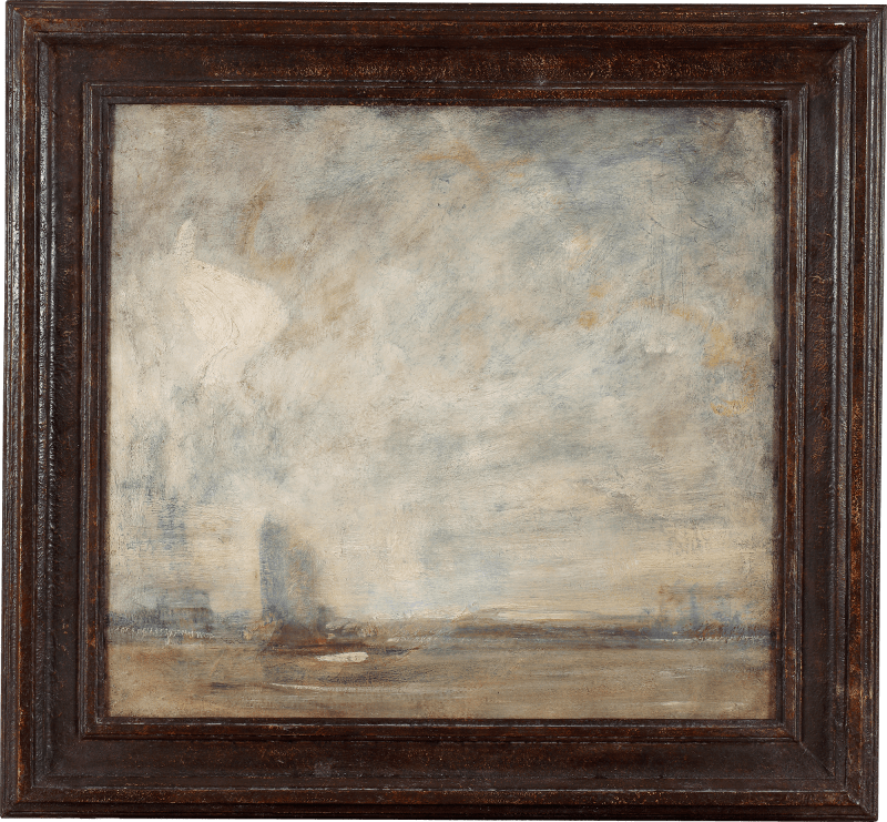 Depicted in profile, the subject’s face is illuminated, and her features are highlighted with delicate attention to detail. The background is an energetic reminder of McEvoy’s style of painting with multiple layers of colour applied rapidly over one another; the portrait has been built up in multiple layers of intersecting brushstrokes of varying length, thickness and colour. A fearsome application of paint and bursts of merging colours towards the lower half of the painting exemplify McEvoy’s loose, non-finito attitude to portraiture.