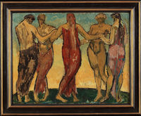Duncan Grant’s Dancers encapsulates a moment of radical transition in British art. Showcased at Roger Fry's seminal Second Post-Impressionist Exhibition, it is one of Britain’s first truly modernist works. In this depiction of five dancing figures, Grant fuses modernist movements such as cubism with his distinctive eye for pattern and design. Acquired directly from Fry’s landmark exhibition, this work has, until recently, remained in the same family's collection since its execution in 1912.