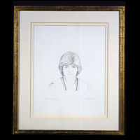 Drawn from life at Buckingham Palace, this meticulously finished preparatory drawing is typical of Bryan Organ’s precise draughtsmanship. It is the most finished of four drawing studies for his 1981 acrylic portrait of the Princess as Lady Diana Spencer, during her engagement to the Prince of Wales.