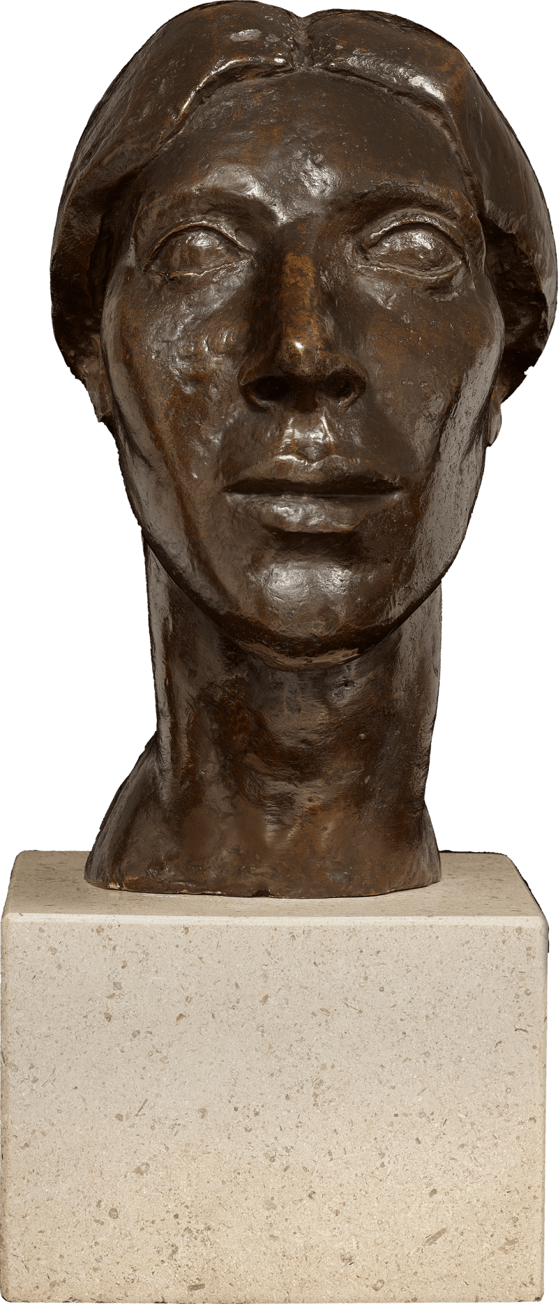 Of the principal representations of Lytton Strachey, none are as affecting as this likeness, which can be considered one of Stephen Tomlin’s masterpieces. Strachey’s expressive features, heightened by the visible marks of modelling, succeed in producing a characterisation that imparts the veneration in which Tomlin and others held him, and captures the perspicacity for which the biographer and writer was famous. The present work is the artist’s surviving plaster which resulted in three recorded casts in various mediums produced between 1929 and 1930 and was retained by the artist as a showpiece in his studio. A plaster of similar status depicting Virginia Woolf is now in the collection at Charleston and has been hand-painted in a similar manner to the present work.