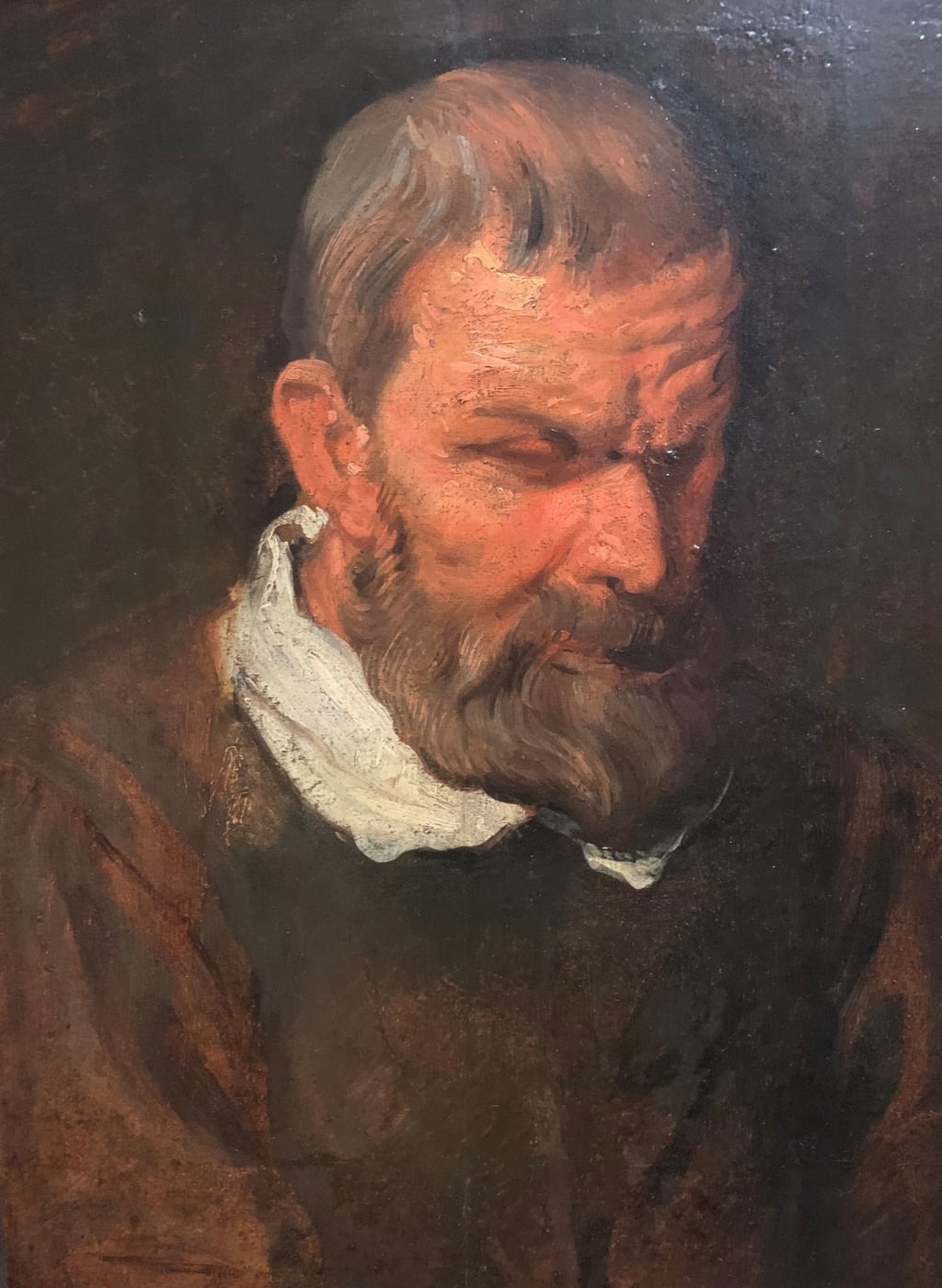 Double Head Study of a Bearded Man is also a rare survival insofar as it shows multiple heads on a single support (in this instance canvas, but Van Dyck generally used paper for these studies). Although we are now used to seeing the head-studies at standalone works, originally, many of them would have been painted side-by-side on a single piece of paper or canvas. After Van Dyck's death, however, the studies were often divided up by dealers and sold off individually.