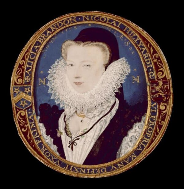 After The death of Mary I, the Protestant succession was restored with the coronation of Queen Elizabeth I in 1558. By 1559, the Bodley's had returned to England, moving to London with Hilliard. On 13th November 1562, Hilliard was admitted into the household of his master, Robert Brandon (d.1591), goldsmith and jeweller to the new queen. Through Brandon, Hilliard gained two significant introductions: the first was to his future wife, Alice (Fig.1), Robert's third surviving child; the second was to Queen Elizabeth herself (Fig. 2).