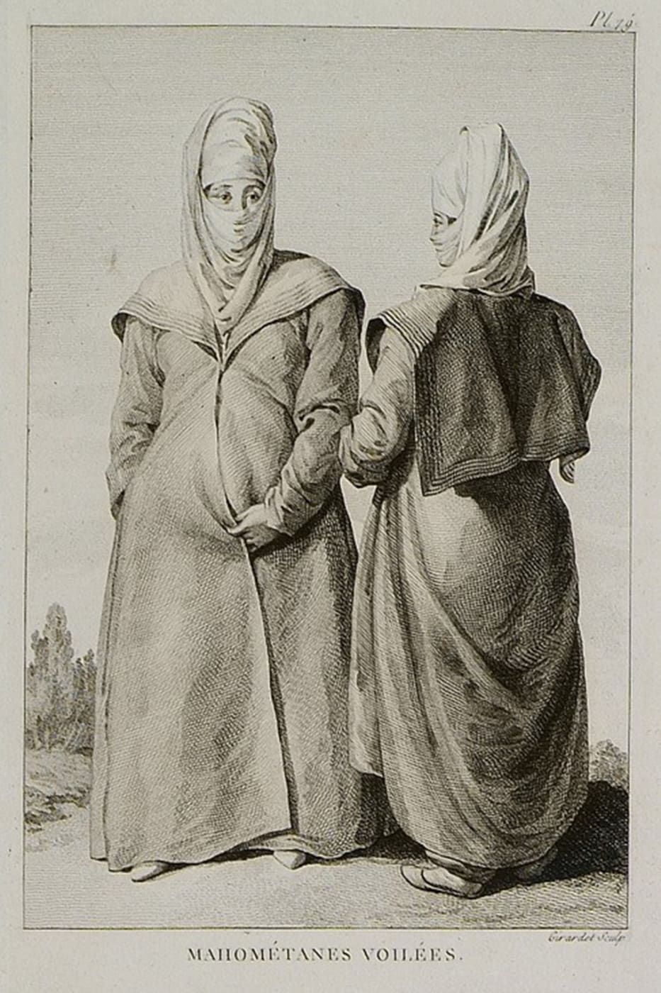 By contrast, we believe Two Veiled Young Women is based on memories of printed costume sources. The costume is much harder to identify. It is certainly not typical Northern African dress. The robes suggest Ottoman attire, while the exaggerated head covering could be Greek or north European.[21] If there is a connection between the drawings of Abdurrahman and the two women, it is to be found in that important literary source of British Romantic Orientalism, Narrative of Ten Years’ Residence at Tripoli in Africa: from the original correspondence in possession of the family of the late Richard Tully.[22]
