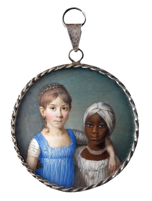 The subject of affectionate interracial relationships in art (as opposed to the servant-master relationships such as the one in Reynolds’s Portrait of George Prince of Wales)[11] is of great interest to the team at Philip Mould & Company, who have had the privilege of handling two early nineteenth-century interracial double portraits: a French miniature and a Northern American oil. Both works have since sold to important public collections in the USA. These works are unique and significant and like Martin’s double portrait, are infused with multiple, complex layers of history and symbolism. They offer fascinating insights and prompt questions about identity in the wake of colliding cultures; themes which in an increasingly globalised, interconnected world are more relevant now than ever before.