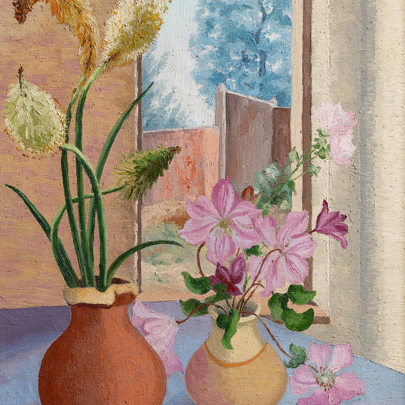 Among our works on loan in the exhibition are Morris’ Summer Garden Flowers, Still Life, Nasturtiums and Pears, Flowers in a Portuguese Landscape, A View of the Outbuildings at Benton End and Winter Flowers, as well as Lett-Haines’ Italian Landscape. Also on display are Morris’ Cabbages, Agaete Gran Canaria, An Italian landscape, and Connemara Landscape, all of which have been previously with Philip Mould & Company.