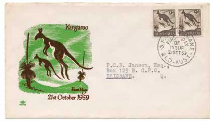 Whilst living in Australia and New Zealand, Mayo designed stamps featuring flora and fauna unique to these countries. Lucky recipients across New Zealand and Australia may have – perhaps unknowingly – received one of her designs, delivered through the letterbox…
