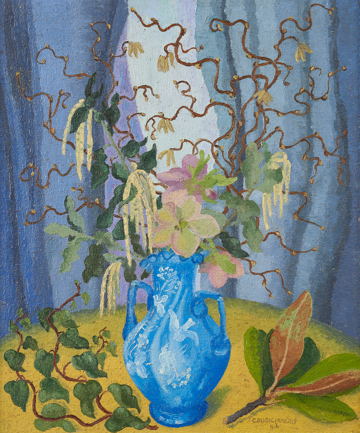 Over the next five years Cedric continued to paint in the countryside and exhibit in London. He staged three one-man shows in London and during this time painted some of his most impressive still-life works. Four of these works, Foxglove (1932), May Flowering Irises No. 2 (1935), Irises and Tulips (1935) and Still-life (1936) are included in this exhibition. Foxglove is a moody collection of horticultural delights focussed around several varieties of foxglove and set against an earthy background. It was exhibited by Cedric in 1934, the year before he painted May Flowering Irises, No.2. The latter is one of Cedric's finest paintings of irises from this date. He captures his subject in a way that only a painter with a profound understanding of this flower ever could, and through his shrewd observation, thickly applied paint and strong colour, manages to bestow on his subject a genuine sense of life and character.