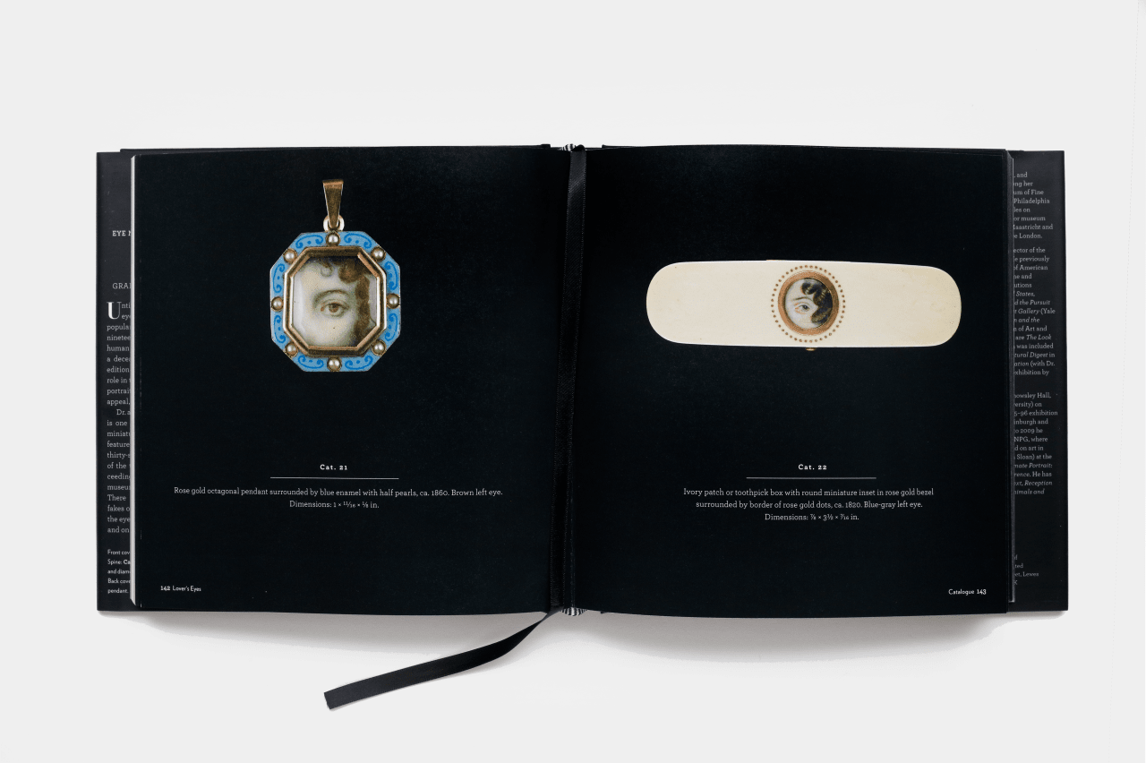 Until the early 2000s, little had been written about eye miniatures or "Lover's Eyes", and their short-lived popularity at the end of the 18th- and early 19th-centuries, when hand-painted portraits of single human eyes were set in jewellery, or created to memorialize a deceased loved one.