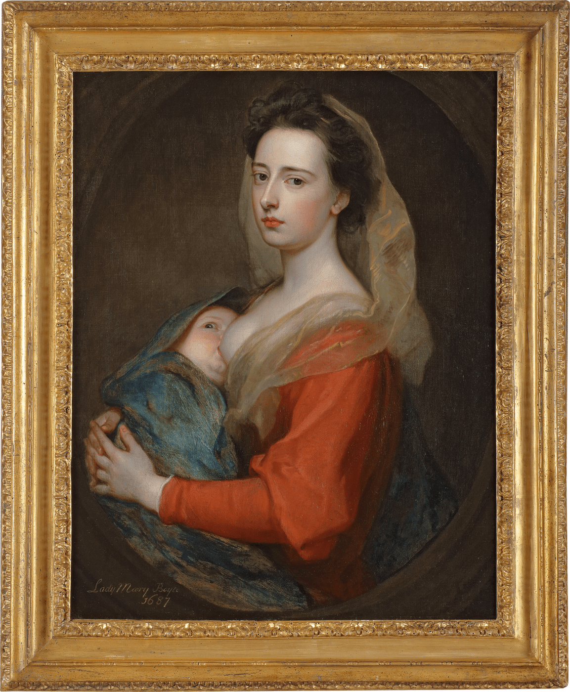 Lady Mary Boyle nursing her son Charles, by the leading court artist Sir Godfrey Kneller is the earliest known painting of a mother breastfeeding her child in British and Irish portraiture. The intense naturalism of this portrait advances contemporary understanding of the changing role of motherhood throughout the early modern period, and to all present researchers, no immediately comparable work of portraiture is known.